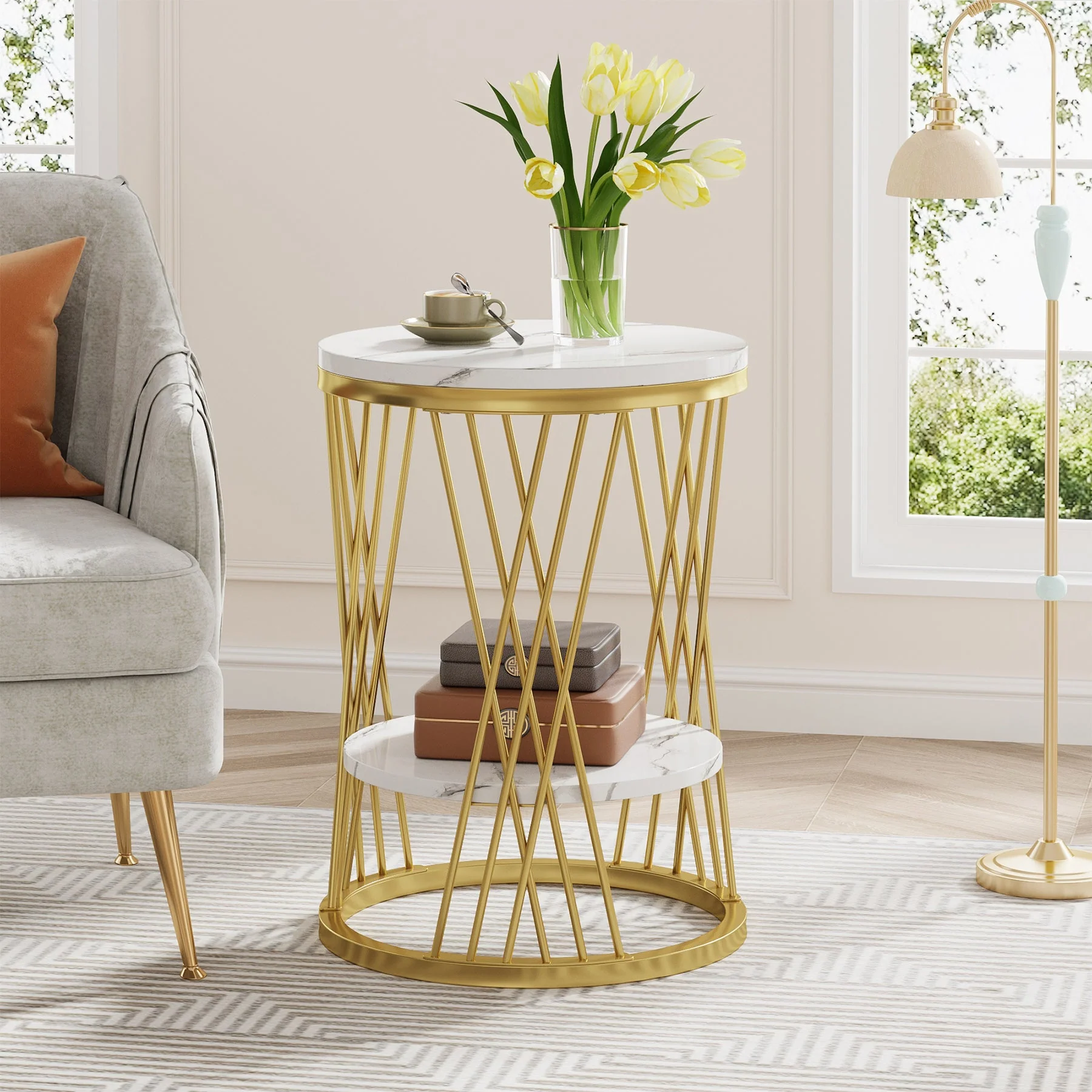 Tribesigns Table basse ronde à 2 niveaux avec étagères en faux marbre